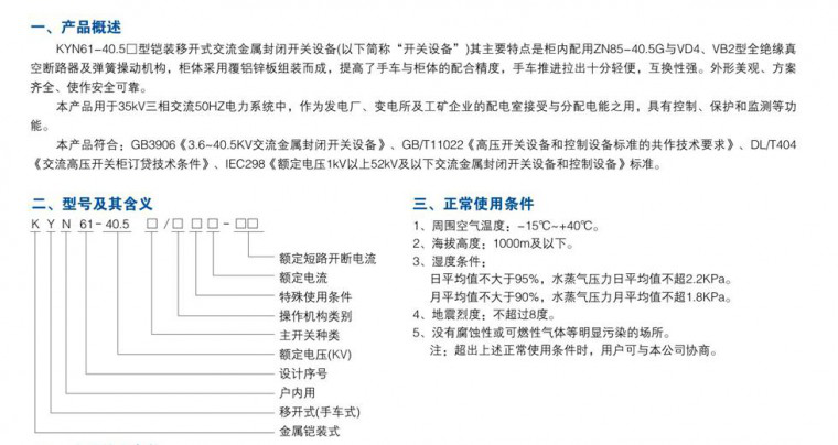 KYN61-40.5高壓柜適用于三相交流額定電壓40.5kV,額定頻率50Hz的電力系統(tǒng),用于接受和分配電能并對(duì)電路實(shí)行控制、保護(hù)及檢測(cè),除廣泛用于一般電力系統(tǒng)外,還可使用于頻繁操作的場(chǎng)所。