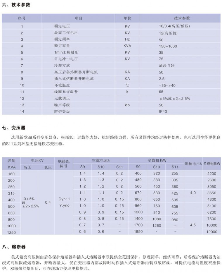 過載能力強,允許過載2倍2個小時,過載1.6倍7個小時而不影響箱變壽命。